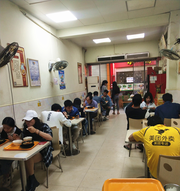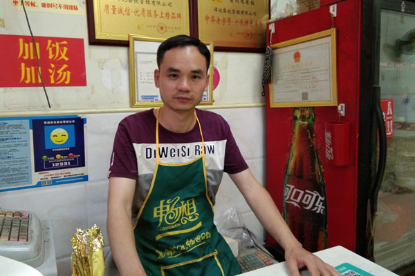 午餐时间,走进谭逢斌的店,位置上满满坐的都是来吃他家黄焖鸡米饭的顾客。这是他一天中忙碌又快乐的时刻。