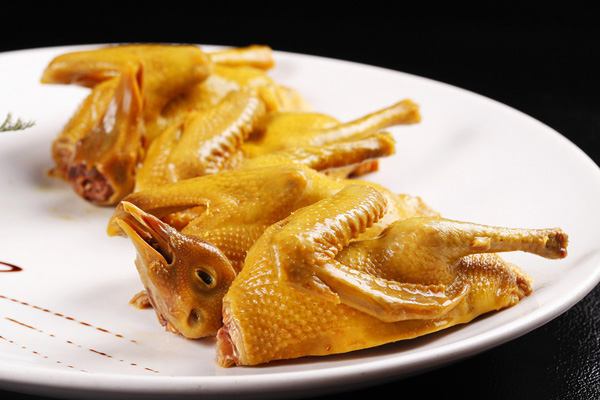 1、先将乳鸽洗净,用葱姜黄酒汆水去腥后,落入热卤水中浸10分钟,用荷叶包裹备用。