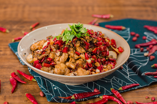 贵州辣子鸡既不是焖烧也不是干香,重点是要用贵州自制的糍粑辣椒,而不是干辣椒来调味,鸡肉在炒熟之后再继续焖煮,入口更松软~