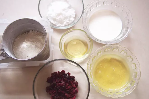 蔓越莓在面粉中过一下,倒入蛋糕糊中,这样不容易沉底。
