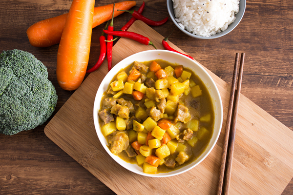在热腾腾的米饭浇两勺咖喱,一顿能吃三碗饭。
